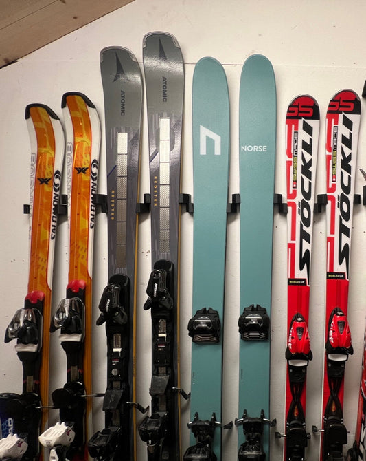 Vi vet hur viktigt det är med ordning i stugan, garaget eller hallen när hela familjen ska ut i backen eller spåret. Våra vägghängda skidhållare gör det enkelt att förvara skidorna snyggt, säkert och platsbesparande – samtidigt som de lyfter fram skidornas design.