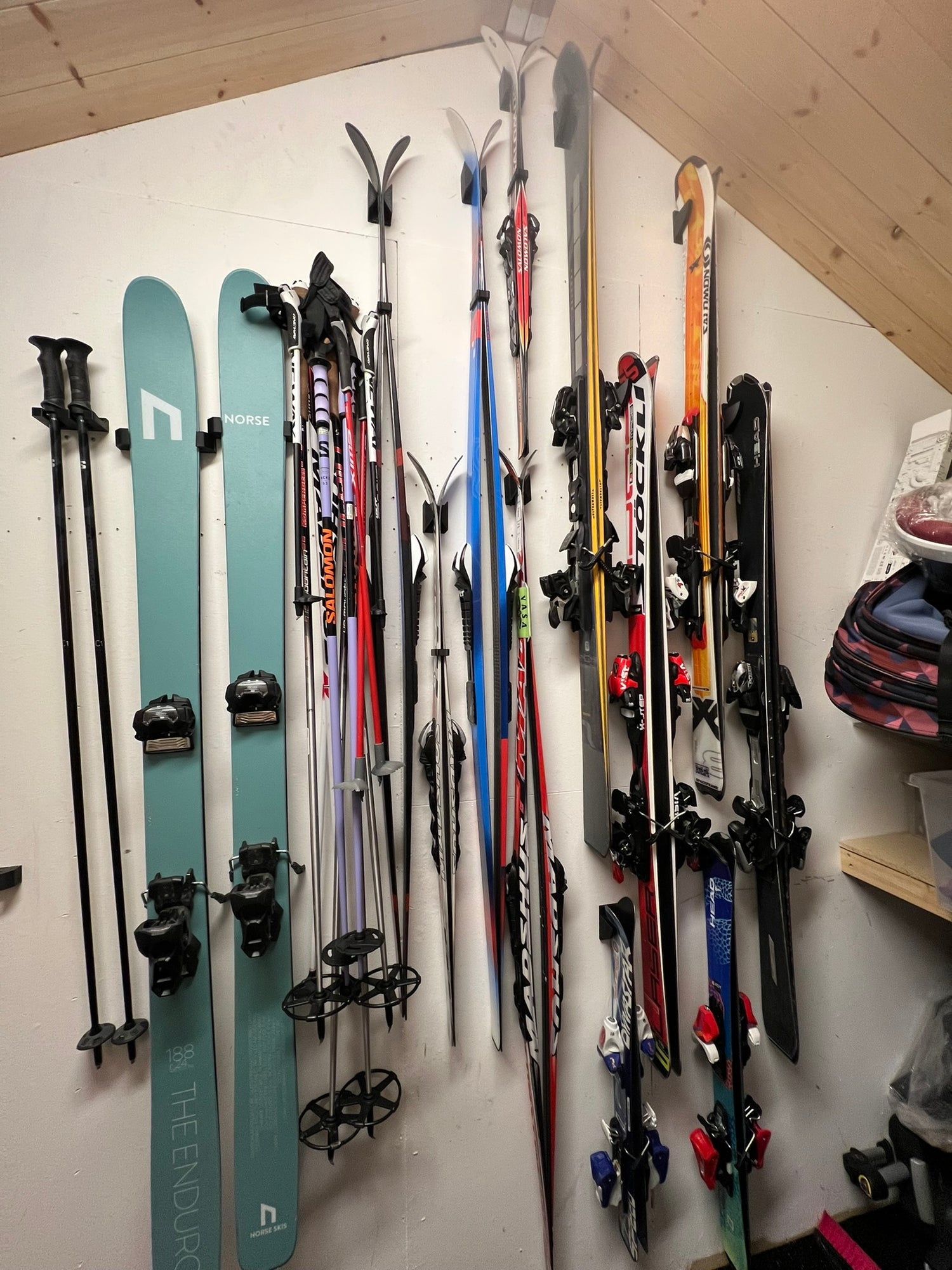 Vi vet hur viktigt det är med ordning i stugan, garaget eller hallen när hela familjen ska ut i backen eller spåret. Våra vägghängda skidhållare gör det enkelt att förvara skidorna snyggt, säkert och platsbesparande – samtidigt som de lyfter fram skidornas design.